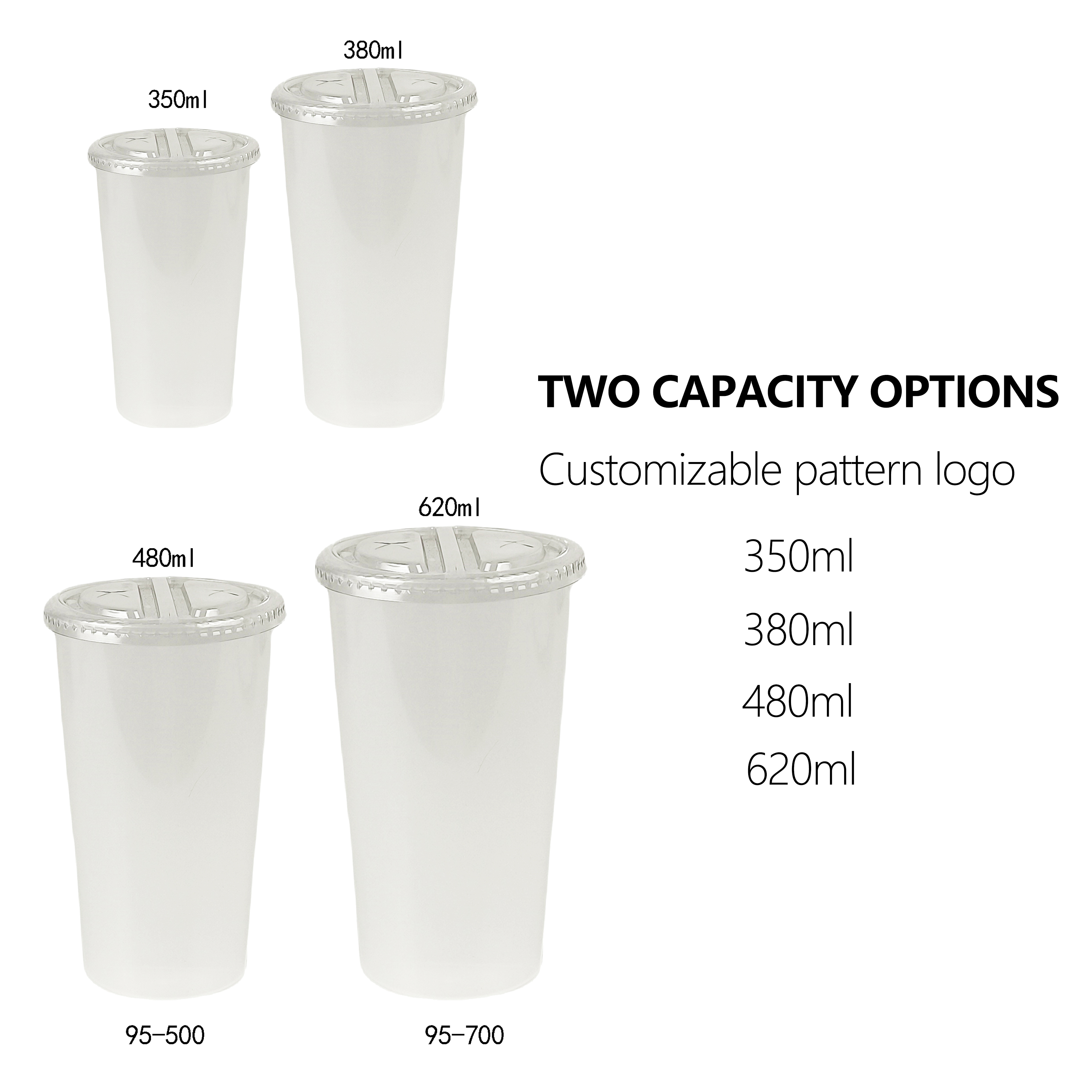 كوب شاي بالحليب مزدوج مقسم مخصص كوب بلاستيك مع غطاء