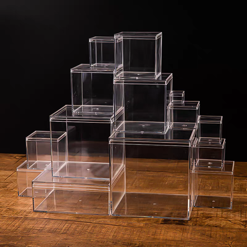 تخصيص صناديق الأكريليك بغطاء للعرض مكعب بلاستيكي شفاف مربع